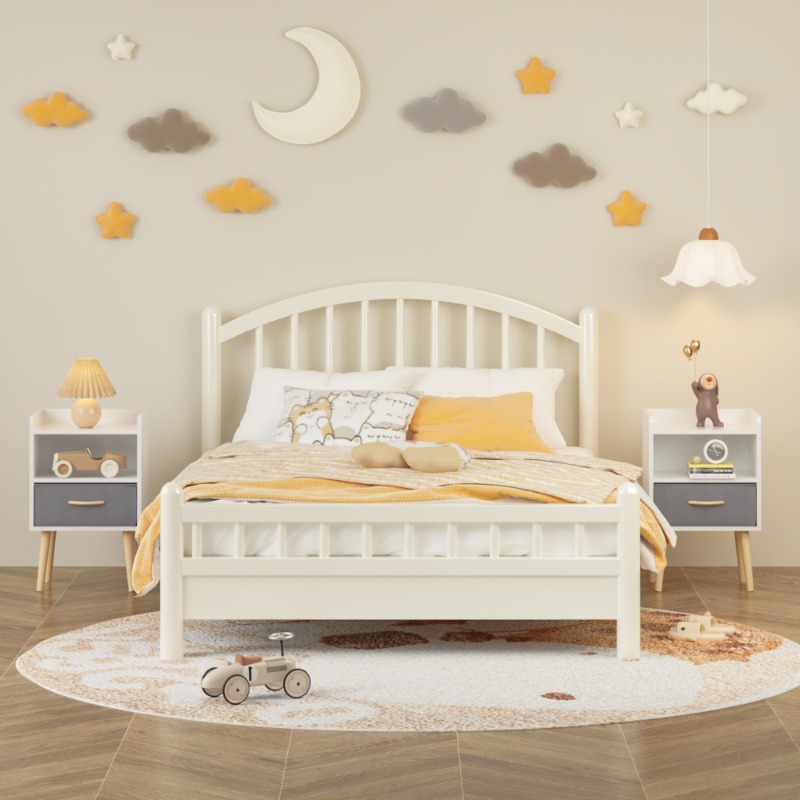2pcs Nightstand with Collapsible Fabric Drawer | 2-Tier Storage End Table, Wood Side Table with Storage Cabinet for Bedroom, Living Room - White